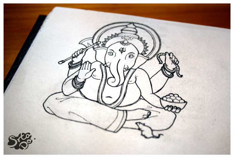 Esta semana estoy trabajando en un proyecto que estoy disfrutando mucho sobre el dios hindú Ganesha. ¡Espero que os guste mi boceto!